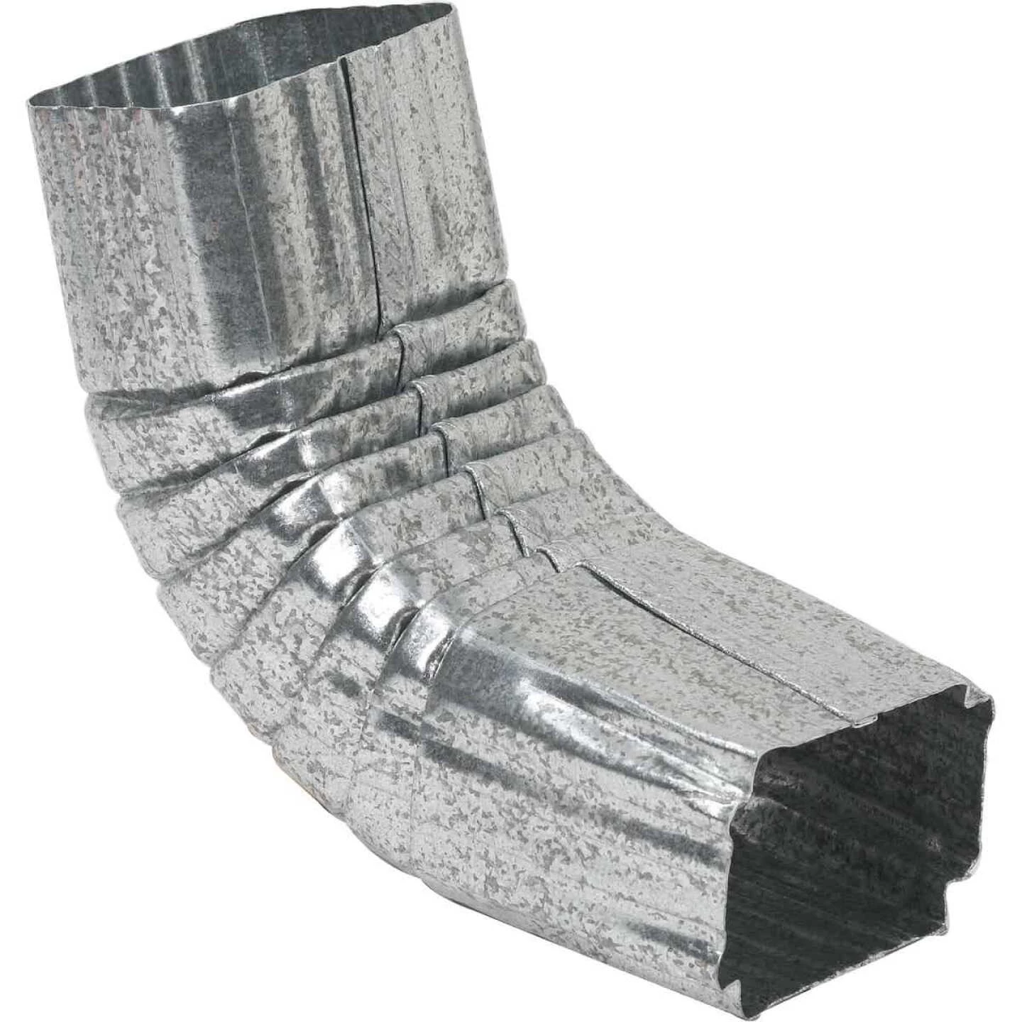 Galvanized steel front elbow for use on 2 In. x 3 In. downspout. Forward or back angle directs water from gutter outlet into downspout opening. Can be used to move water away from home foundation at the bottom of a downspout. Made of durable steel.