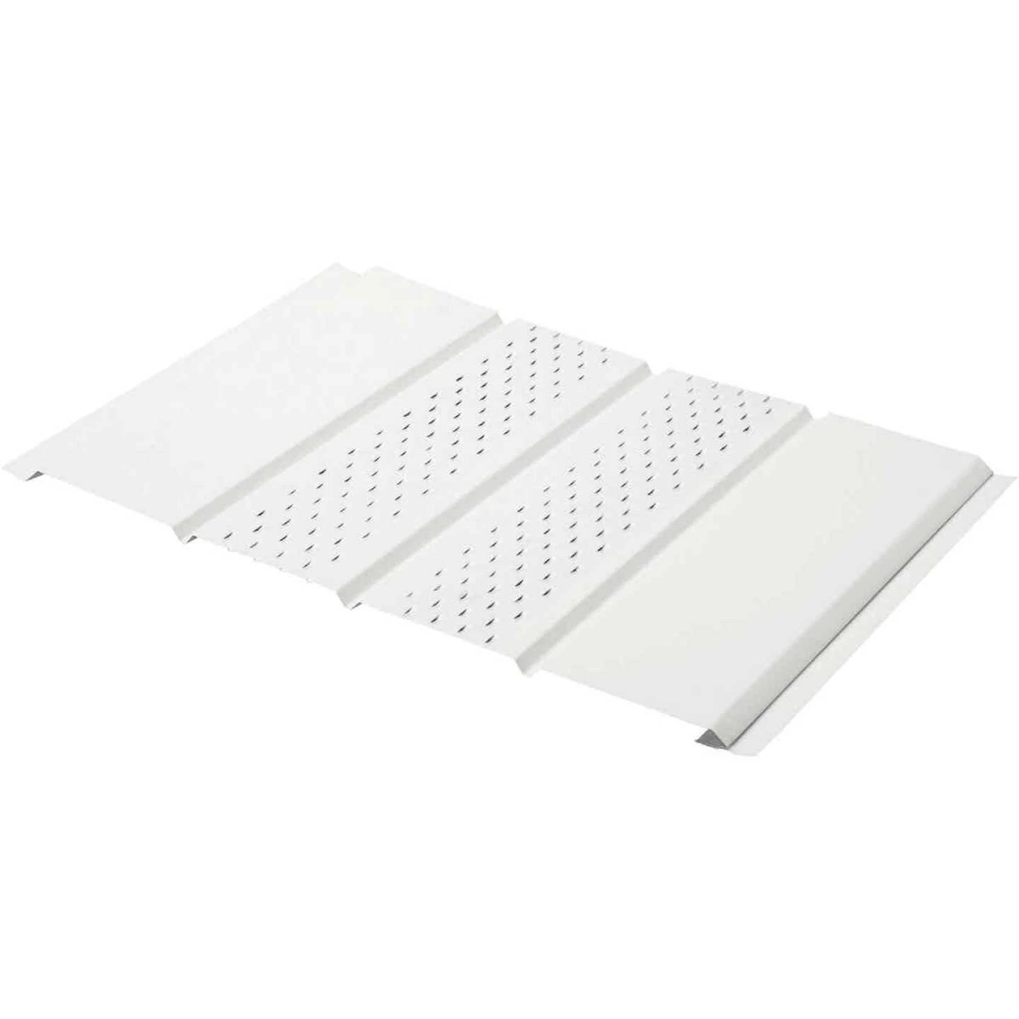 16″ aluminum center vent, 4 panel soffit. Each panel is 4″ W x 12′ L x 0.0185″ thick. White.